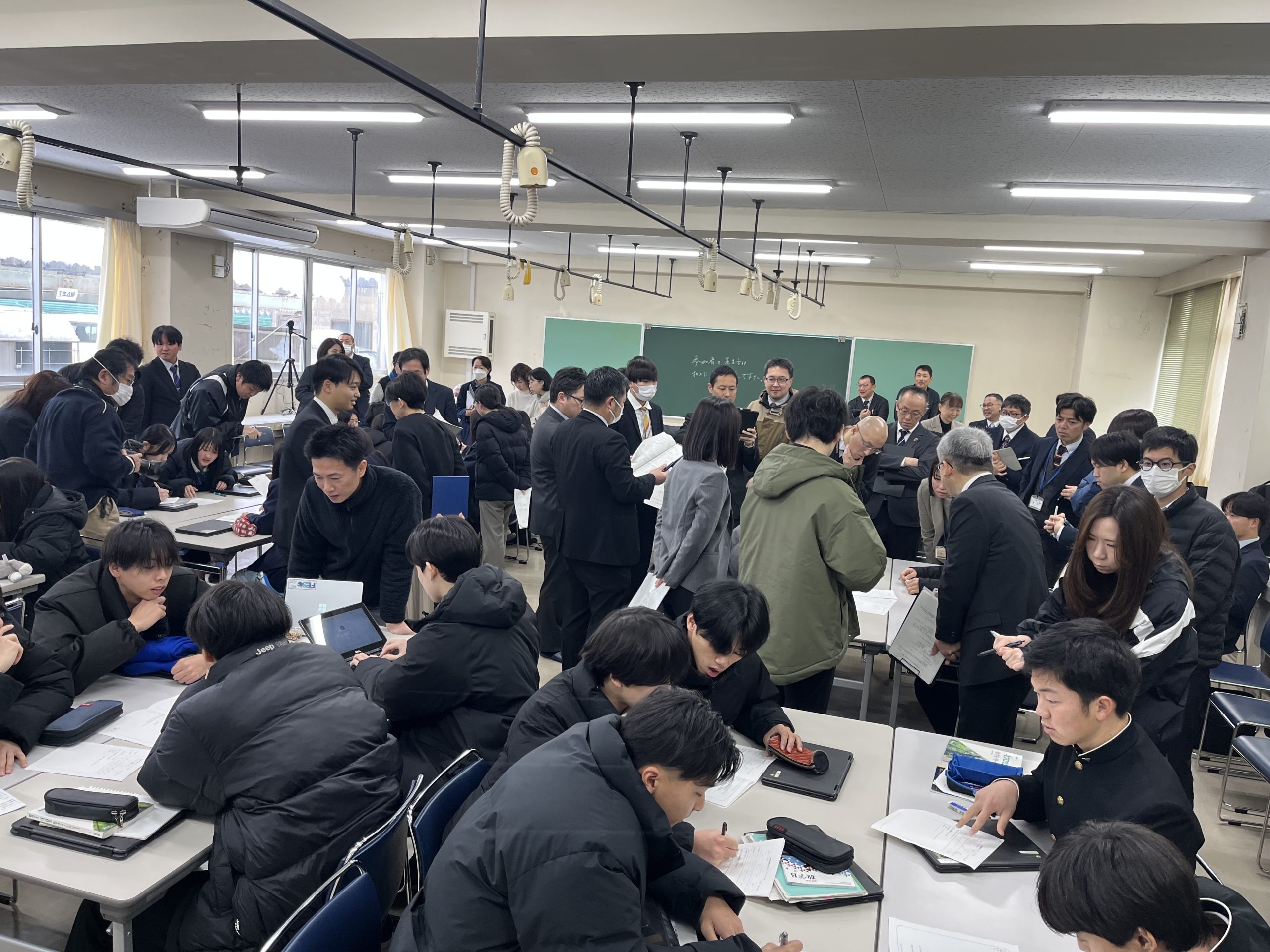 1/27(火)、「生成AIを活用した個別最適な学びと協働的な学びの一体化」をテーマに、県教委主催の授業改善推進のための授業研究会が本校で開催されました。当日は、AIを活用した教育の第一人者である安藤昇氏(青山学院中学部)を講師に迎え、県内の探究的な学習推進リーダーたちが集まり、熱気あふれる研究の場となりました。