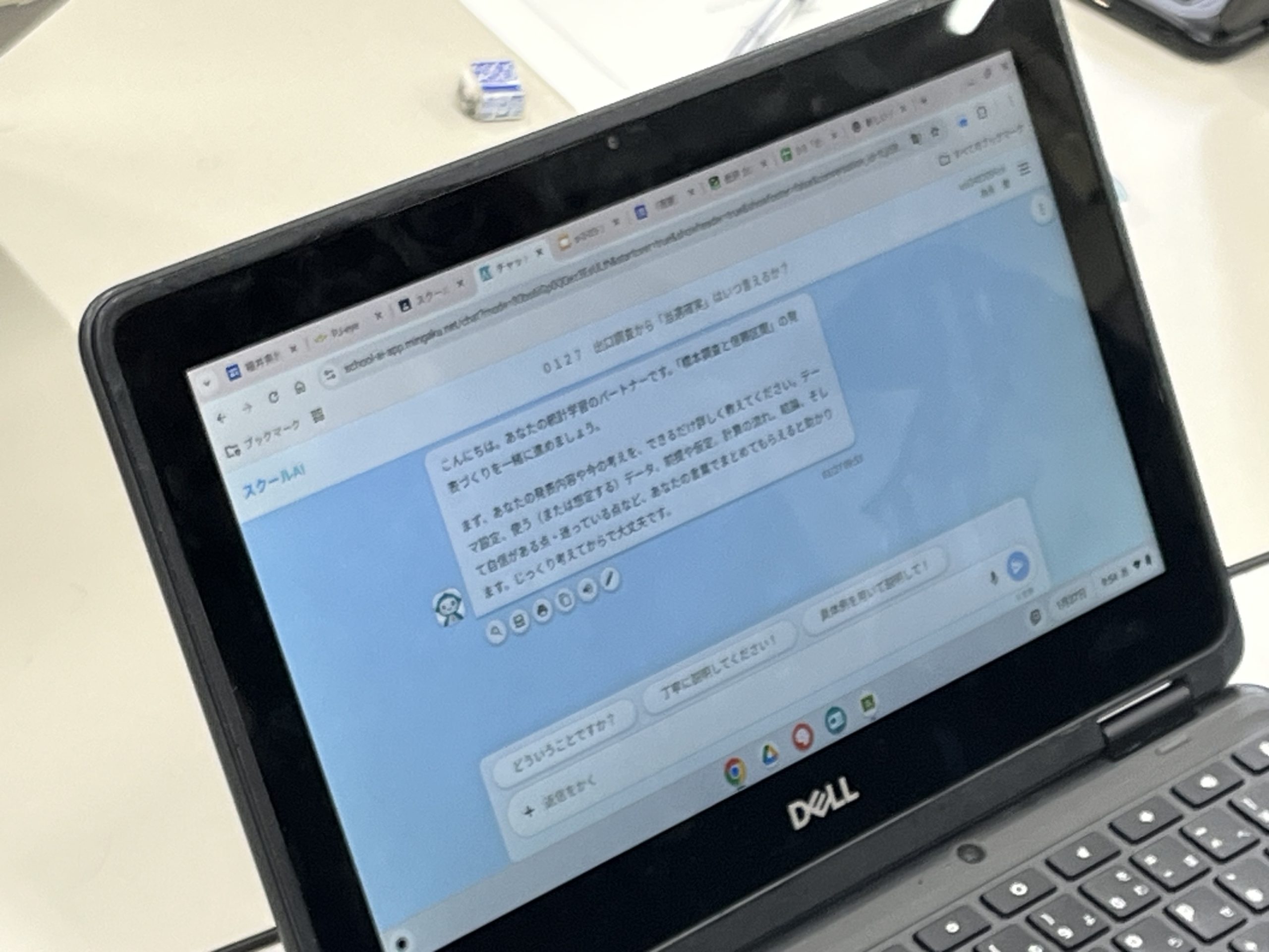 今回の研究会を通して、生成AIは適切に活用することで、生徒の探究心を高め、思考を広げる有効なツールとなり得ることが示されました。今後もこうした実践を積み重ね、授業の質をさらに高めてまいります。
